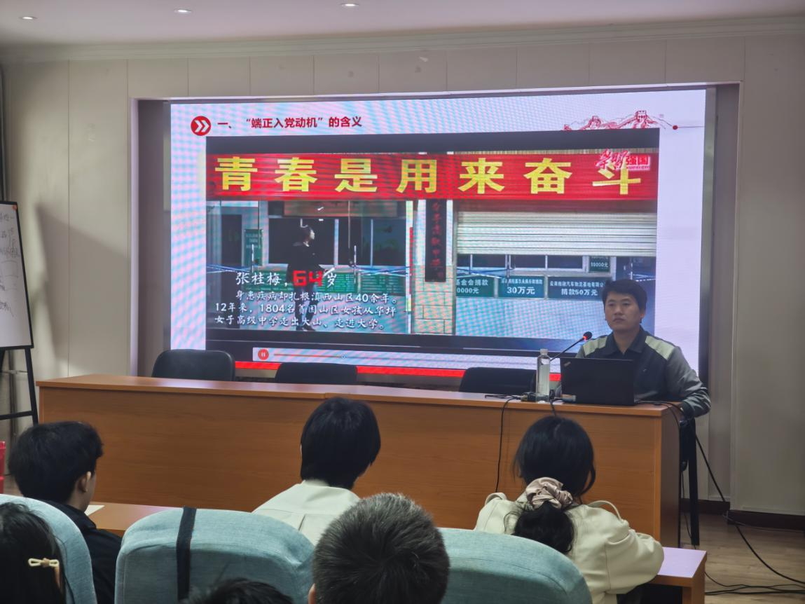 3月29日上午,辅导员黄东涛老师以“中国经济的韧性与新时代青年大学生的使命担当”为主题进行辅导报告,为学员们带来了一堂兼具深度与温度的思政课。随后辅导员韩鹏振老师围绕“端正入党动机,争取早日入党”为主题进行辅导报告。