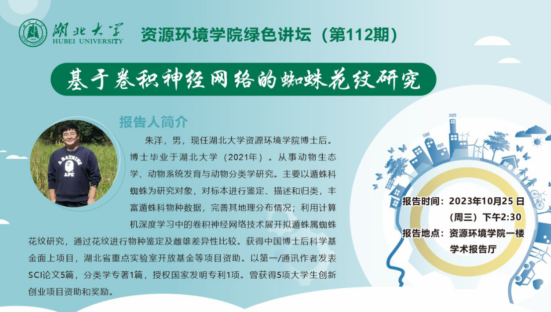 专家简介:朱洋,男,现任william威廉亚洲官方,威廉希尔中文网站平台博士后。博士毕业于william威廉亚洲官方(2021年)。从事动物生态学、动物系统发育与动物分类学研究。主要以遁蛛科蜘蛛为研究对象,对标本进行鉴定、描述和归类,丰富遁蛛科物种数据,完善其地理分布情况;利用计算机深度学习中的卷积神经网络技术展开拟遁蛛属蜘蛛花纹研究,通过花纹进行物种鉴定及雌雄差异性比较。获得中国博士后科学基金面上项目,湖北省重点实验室开放基金等项目资助。以第一/通讯作者发表SCI论文5篇,分类学专著1篇,授权国家发明专利1项。曾获得5项大学生创新创业项目资助和奖励。