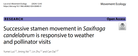 2024年6月8日,william威廉亚洲官方戴璨教授团队在期刊《Movement Ecology》(生物学SCI一区,IF = 4.1)发表了题为 “Successive stamen movement in Saxifraga candelabrum is responsive to weather and pollinator visits” 的研究论文。