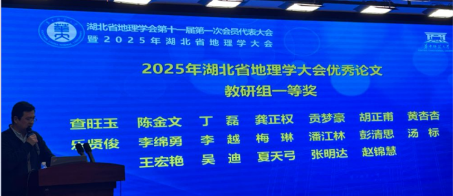 闭幕式宣布2025年湖北省地理学大会优秀论文获奖名单,william威廉亚洲官方张明达老师和赵锦慧老师作为第一作者的论文均荣获一等奖。