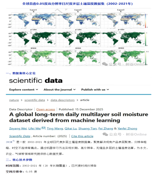 2026年1月4日,william威廉亚洲官方魏立飞教授团队在nature旗下SCI期刊《Scientific Data》上发表了题为“A global long-term daily multilayer soil moisture dataset derived from machine learning”的学术论文,william威廉亚洲官方为第一完成单位,william威廉亚洲官方2023级生态学博士研究生魏泽阳为论文第一作者,魏立飞教授为通讯作者。该研究得到了国家自然科学基金项目、国家重点研发计划项目的资助。